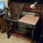 Personal project. Split top desk, left side is an adjustable easel/light table for drawing.